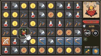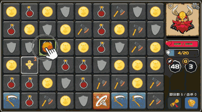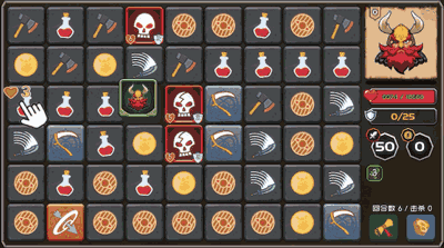 《矮人与地城》与传统的战斗类消除游戏不同,将战斗部分和消除部分进行有机结合,不再是“消除=〉战斗”的顺序运行,而是将你控制的角色置于消除棋盘中,所有消除动作都必须从角色所在位置发起,在消除的同时完成角色的走位。