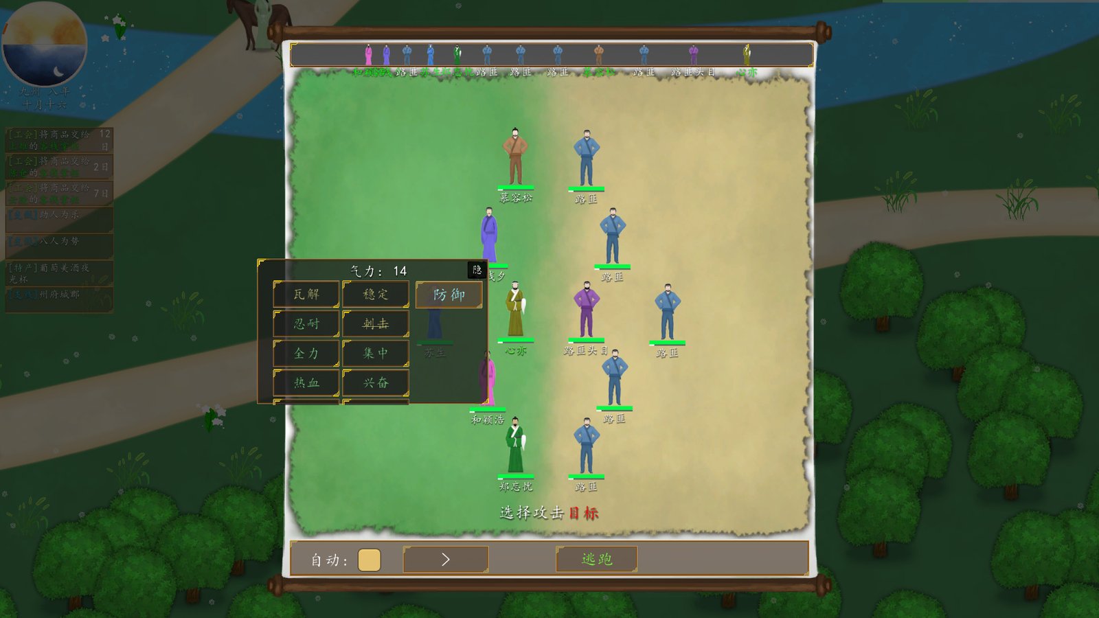 对商队/角色进行袭击后,其成员会进入虚弱状态,所有属性减少50%,持续30天自动移动现在可以在经过城郡时自动进行补给