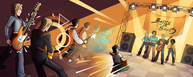 - 凭借实时的即兴乐队规则与技巧获取更高的分数