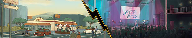 《Backbeat》是对90年代16-bit与32-bit剧情游戏的致敬,再现了模拟音频时代最后的挑战与荣光,以及互联网的诞生。通过餐厅停车场、购物中心与昏暗的游戏厅,描画出华盛顿市郊百态.