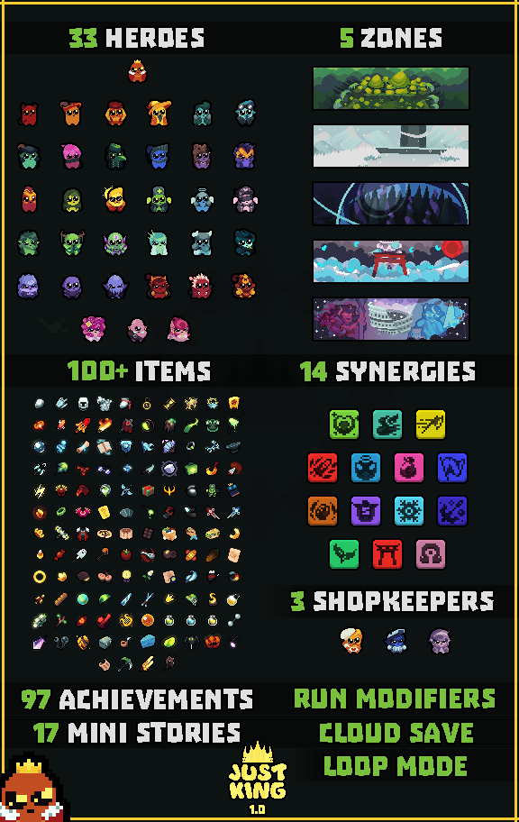 Just King 是缝合了无双割草和肉鸽自走棋的超可爱游戏
